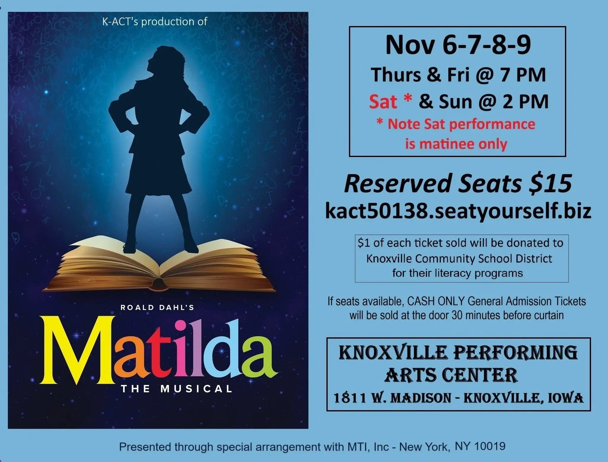 Tickets Now Available for K-ACT’s Matilda the Musical