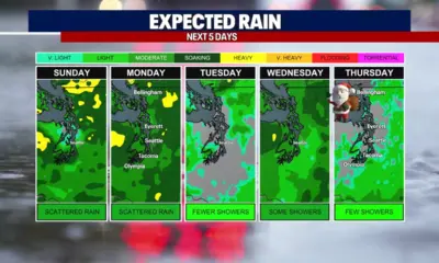 By Saturday, the forecast indicates a return to calmer conditions with partly sunny skies and a high near 49°F, offering a peaceful closure to the holiday week.